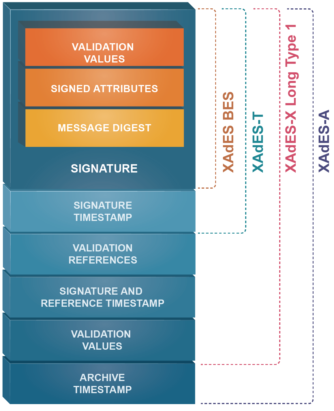 ES-A (Archival Electronic Signature) is the signature format that should be used in cases where signed documents need to be stored longer than the validity period of the certificate authority's root/sub-root, OCSP and timestamp certificates.